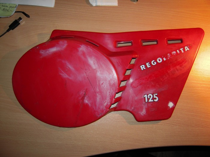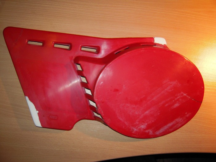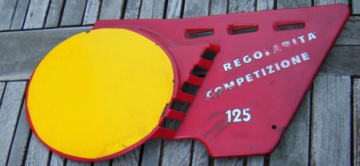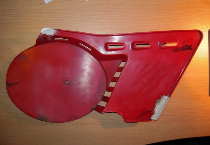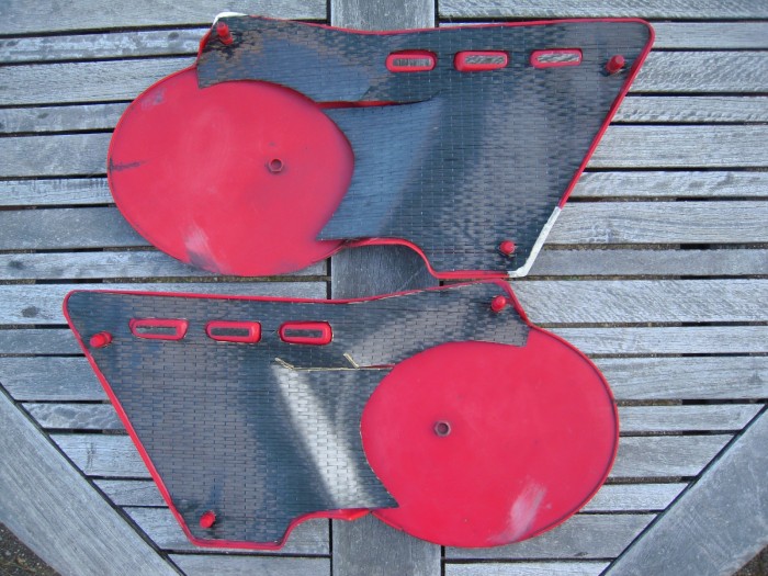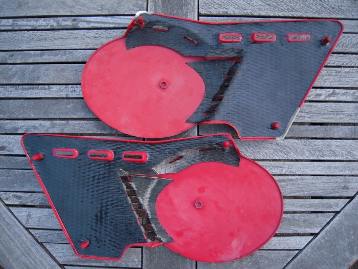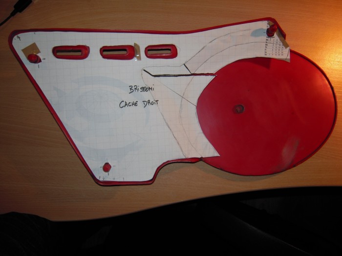 Quant aux caches latéraux, largement réparés et modifiés par mézigue, je suis plutôt partisan de leur redonner la décoration qu'ils avaient lors de mon achat. Seulement voilà: la déco gauche et la déco droite n'étaient pas les mêmes, et après m'être renseigné auprès du Prez, c'était identique sur la moto de course de Pascal Poyard.