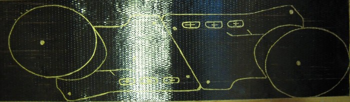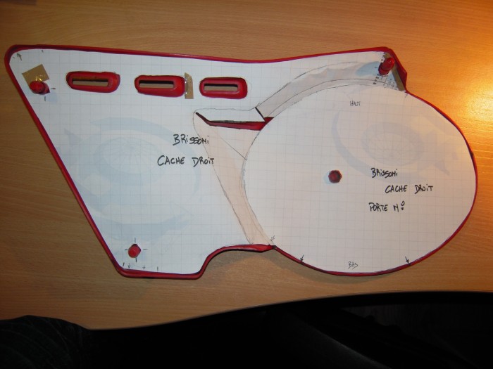 Nouvelle étape de ma campagne de réparation: traçage des gabarits papier sur le tissus carbonne et découpe: