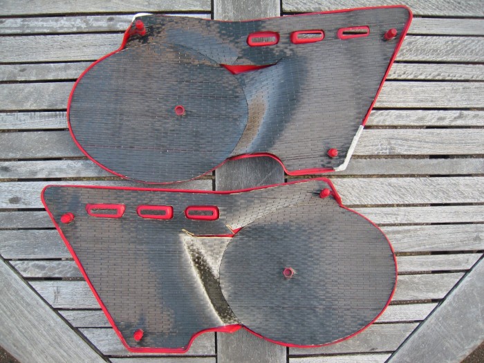 Aujourd'hui, je vous propose la mienne, qui consiste à mettre  un tissu carbonne noyé dans un lit de résine époxy. Je l'avais déjà testé il y a quelques années sur les plaques de mon TX 190, et le résultat était très intéréssant. Certes, elles n'ont pas été mises à très rude épreuve depuis (hum !) mais on sent bien que ça reste plus solide qu'a l'origine.