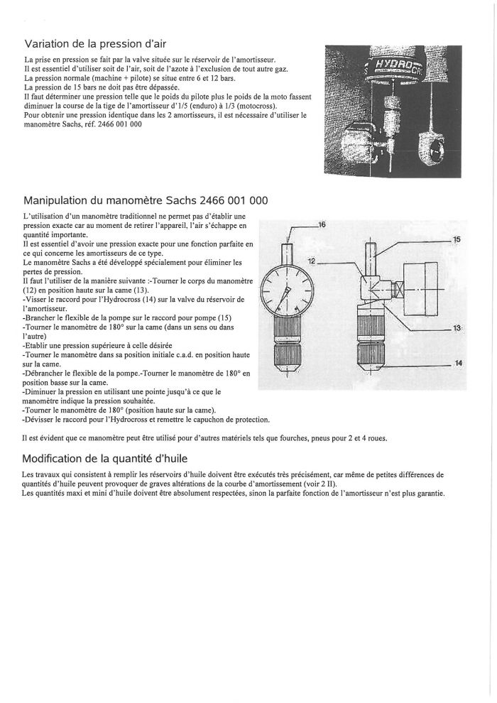EMPLOI ET ENTRETIEN SACHS HYDROCROSS