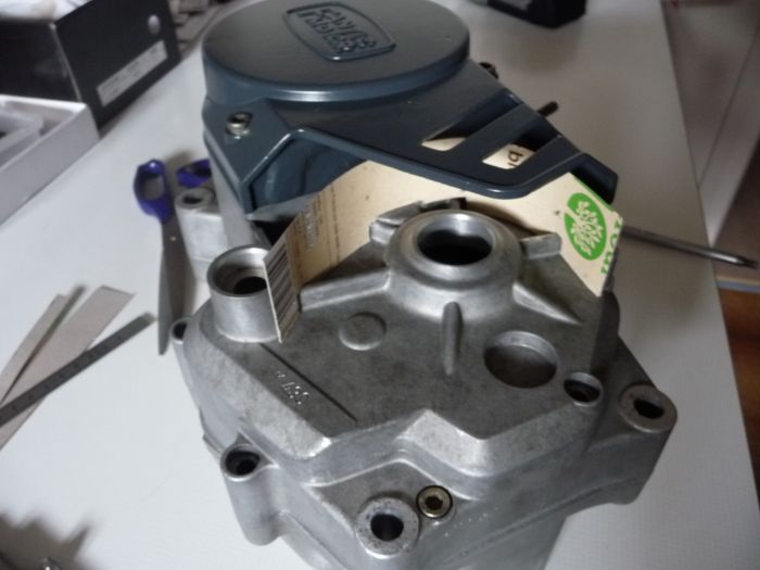 le plan de joint à été rectifier pour rattraper l'angle d'origine..... (la pipe du 125 envois trop le carbu sur la gauche)   😡