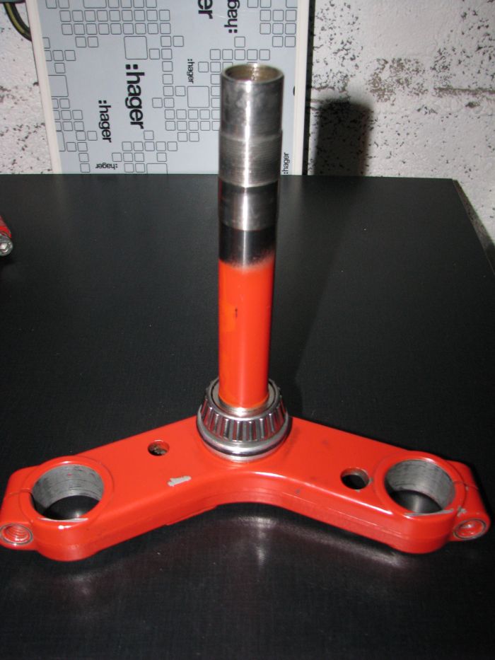-    Sur une idée de STef. Beubeugne ( voir 28/12/2014 « restauration 240 pro la suite » désolé je n’arrive pas à copier le lien) création d’une tige pour permettre lors du remontage de la fourche de serrer le boulon tout en bloquant le plongeur … Merci au bopapa  de GREG pour la soudure et l’idée de son étui de protection PVC.