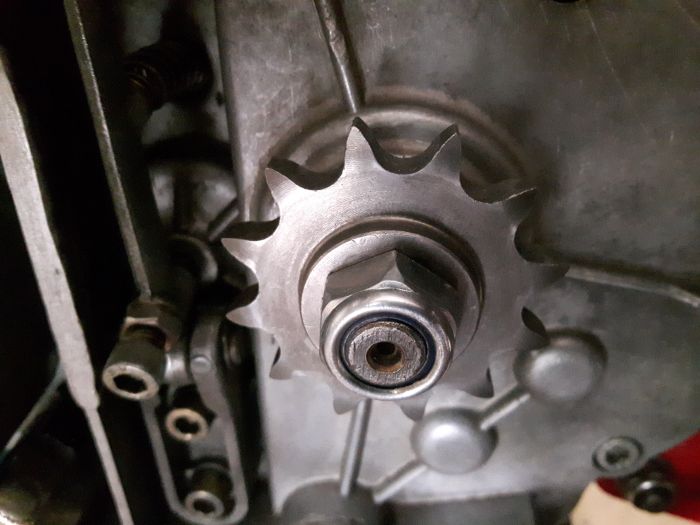 - Un sur le pignon de sortie de boite, qu'il aura fallut meuler copieusement pour que la bague plastique vienne suffisamment en prise sur le filetage de l'arbre de sortie de boite