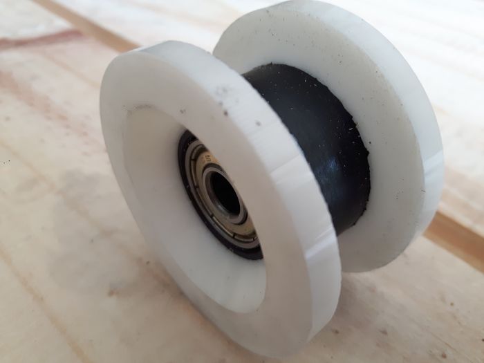 Ouais, le seul truc, c'est que les modes changent et qu'il n'a pas été facile de trouver des roulettes sans marquage à la c..., de couleur décente et dans un matériau correct, type ELADIPRENE dureté shore 70 à 80 environ (vous le sentez au doigt, comme les melons!!!).