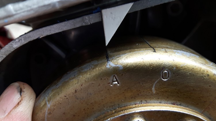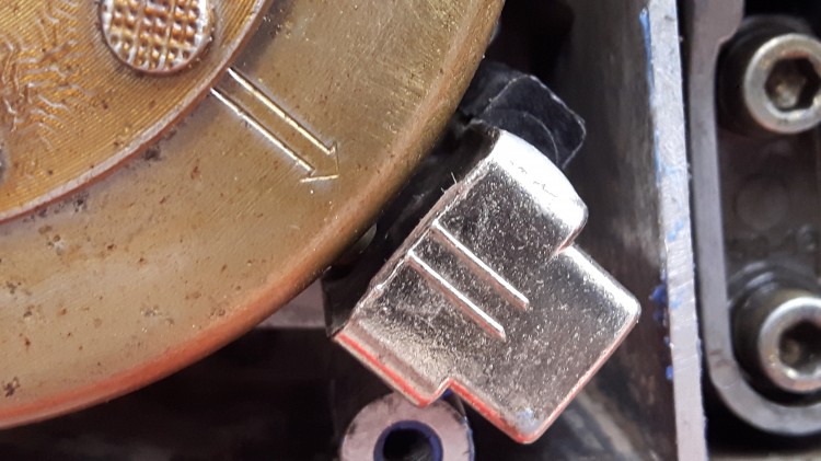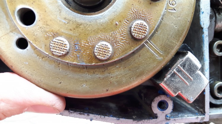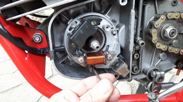 Re-souflage, remontage soigné en vérifiant bien la présence de la clavette et c'est reparti pour un réglage d'avance à 1,4 mm, avec la pige cette fois...