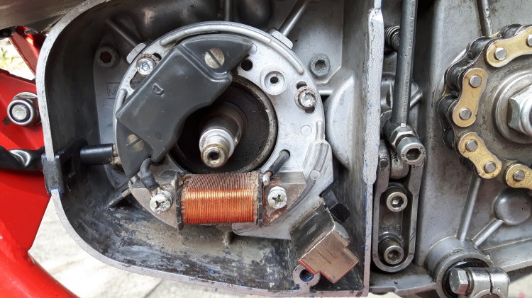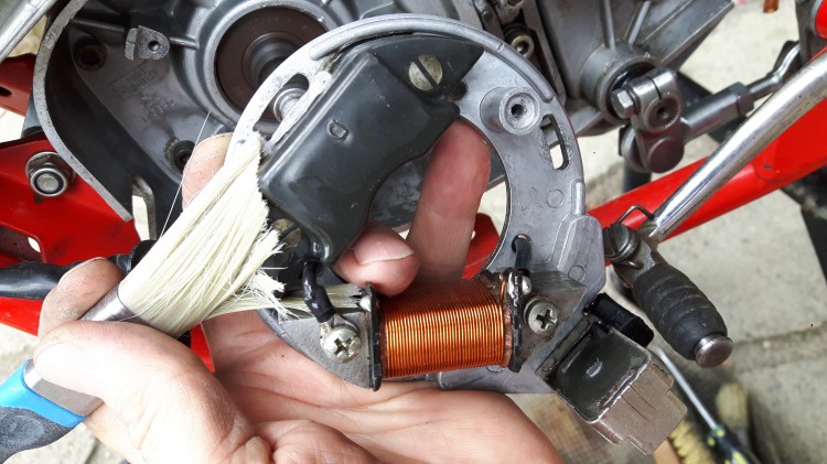 5 - Pendant que l'on a le nez dans l'allumage, autant en faire un bon nettoyage: l'étanchéité du carter est relative et ça devient vite un gros nid à m....!