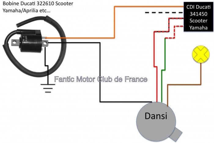 RVRoads a écrit :Alors, il y a un moment, j'ai pesqué sur un forum de cyclos en Italie une idée qu'elle est bonne. Outre la solution connue de remplacer la bobine HT (et HS !) Dansi avec une Ducati Energia, on peut redonner vie et surtout améliorer un Dansi avec des éléments Ducati de cyclo. Plusieurs personnes ont essayé par-delà les Alpes et ça semble marcher. D'après le forum, l'utilisation du CDI de scoot Yamaha, Aprilia, etc... référencé 34 1450 revient à transformer un Dansi en allumage à avance variable !!