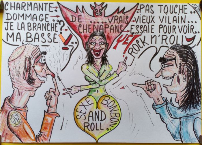 Il me dit, j'avais pensé à Suzette mais je suis trop jaloux...et les mecs qui vont regarder mon megua écusson, surtout dans le dos...je vais pas supporter, et j'vais peter un câble !.. Fais moi une meuff en chaire des années maryline Monroe