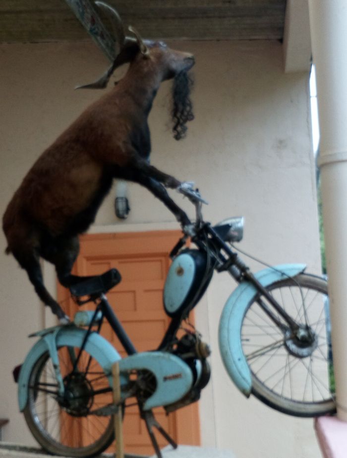 Mon bouc m'a demandé de se laisser pousser la barbe... Il dit qu'il se sentirait + libre la barbe au vent, en écoutant ZZ top...jai hésitë, mais je vois des barbus partout..en fait il est à la mode mon bouc ! *. La mobylette c'est chouette ! *