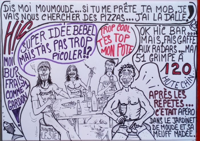 Je tenais à donner cette précision, avant le dessin qui va pas tarder......en rappelant que cette petite bd effectuėe par un dessinateur amateur, est à but humoristique,pour adultes,  à prendre à la légère, en mangeant des pistaches...ou des cacahuètes, voir des chips..  :)..