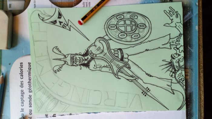 Ce dessin m'a d'abord été demandé par mon fils pour faire la couverture de son petit fanzine dédié au métal français..