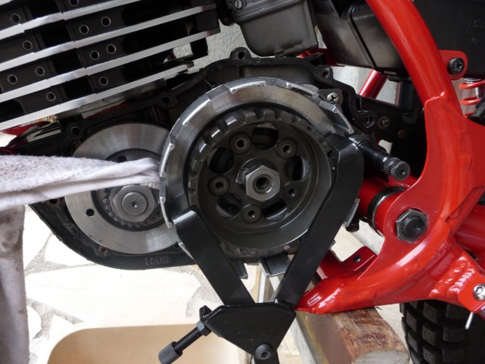 J'avais l'habitude de faire comme toi pour éviter que vilo et embrayage tournent mais un éminent membre du club m'a dit que c'était mal. Il a raison, ça force sur les roulements. Mais dans le cas du 300, je ne vois pas bien comment tu ferais autrement qu'à ta manière sans outil spécifique.