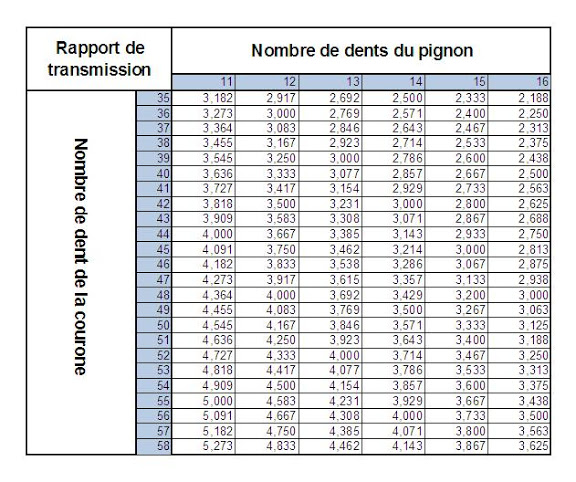 - La notice d'origine préconise 11/60 mais quand j'évoque cette démultiplication on me dit que je suis fou et me jette des cailloux… 🤬