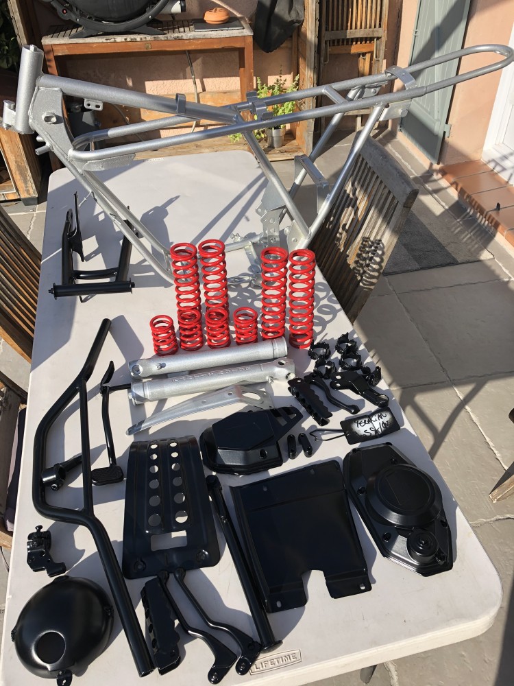 Puis retour de la peinture, l’échappement et seulement sablé et la sacoche à une fermeture éclair neuve.