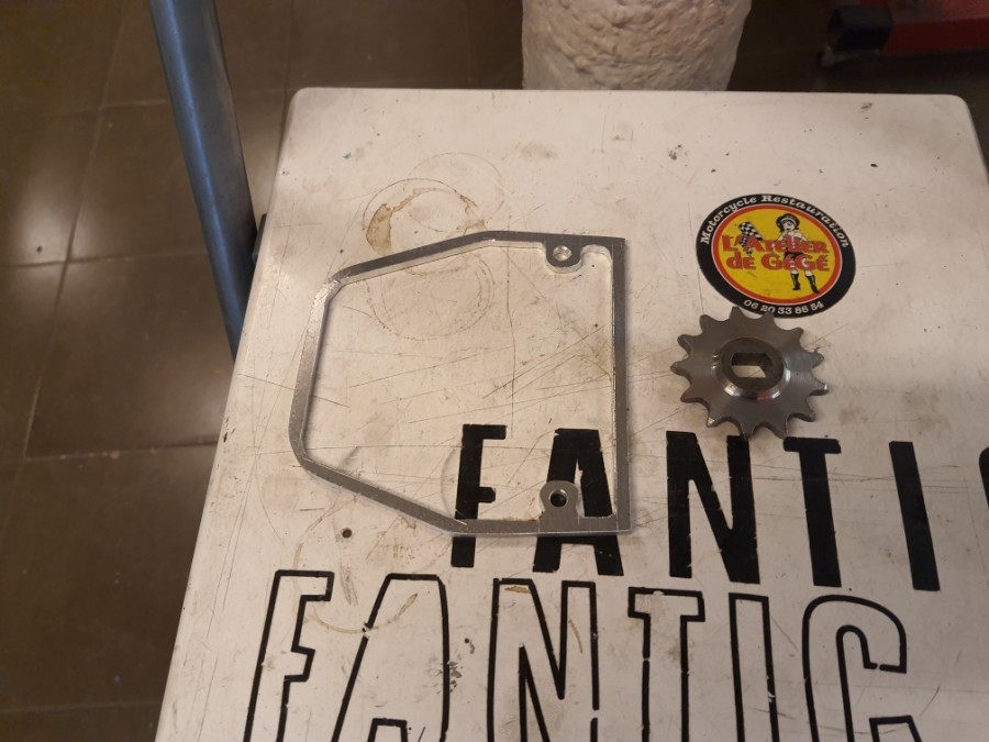 Pour l'instant la moto n'a pas encore démarrée, il faut mettre l'huile dans le moteur et la fourche, monter le pignon, la chaîne, l'entretoise et le carter d'allumage. Mais Gégé doit m'envoyer le pignon rectifié et l'entretoise.