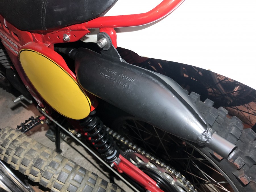 Je récupère un BRISSONI de 81 avec un silencieux de 125 RC 79 avec une mauvaise patte en fer soudée dessus.