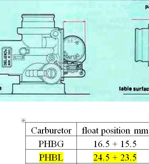 24,5 pour le flotteur , c'est a la fermeture du carburant ?????????????dus flotteur au plan de joint ?????????? comme dit STEPH il a du être sacrement bidouillé ce pauvre carbu