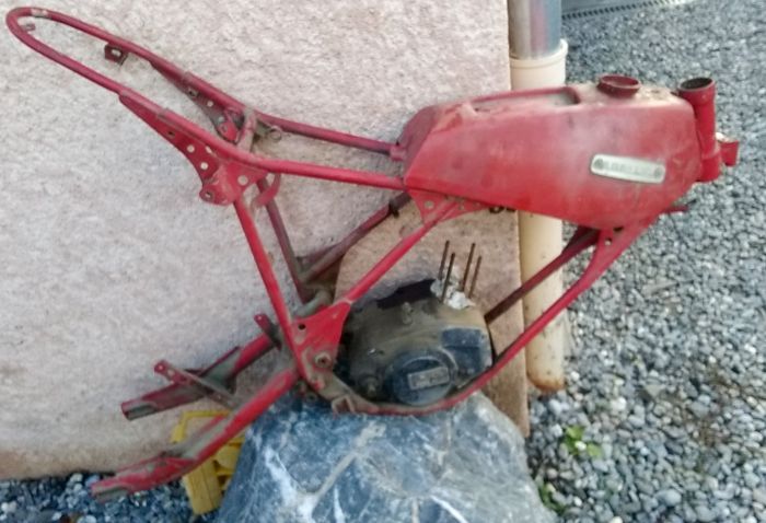 Rien que là tu as toutes les pièces vraiment rares et donc difficiles à trouver (les 2 roues le boîtier de filtre à air la béquille la pédale de frein ) 👍