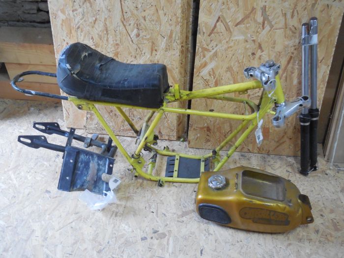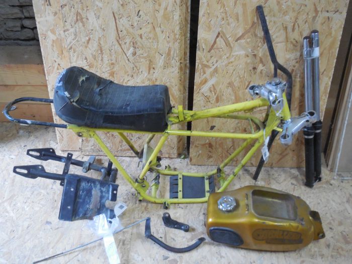 Cadre , selle , fourche , bras oscillant,pédale de frein ; j'achete donc toutes les pieces spécifique a ce modele .