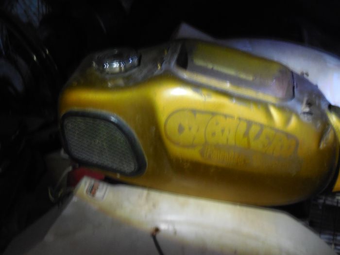 Je lui explique donc que ce reservoir d'essence qui trone au milieu de garde boue et pneus en tout genre , n'est autre que le reservoir d'un Fantic Caballero premiere génération 1969 1970 ; donc une relique !!!!