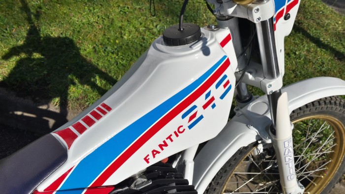 des nouvelles du fantic 243, tous d'abord il étais fini depuis le mois de décembre il a repris une jeunesse, j'ai changer le mono amortisseur et j'ai mis un paioli qui me donne des bon résultat ,, car l'amortisseur d'avant coute plus cher a réparer . cet une moto qui est tres stable , elle n'engage pas dans les virages elle est très souple de pilotage , enfin vouloir la comparer avec un fantic 241 ou un fantic 240 est complètement incomparable . j'ai tous changer sur cette moto le bas moteur joint viton roulement, embrayage segmentation , elle a deux pneux neuf michelin a l'avant et Dunlop a l'arrière .guidon gaine embout de guidon avec un coupe circuit , des repose pied moderne ont été poser , rien que ca améliore considérablement le pilotage . enfin cette moto est a vendre je ne vais pas la vendre très cher bien que je ne compte pas mes heures , j'ai aussi un garde boue arrière tous neuf jamais posé . avec la carte gris ; si queqlu'un est intéressé m'envoyer un MP elle sera bientôt sur le boncoin.