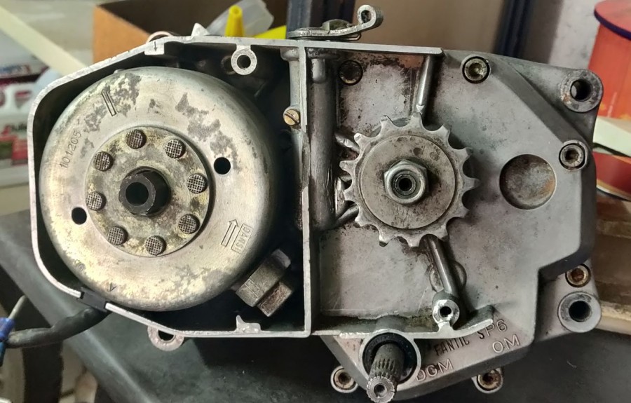 "SP signifie spécial et le catalogue Minarelli les indique pour la vitesse. Comme mentionné plus haut, les carters moteur Fantic sont marqués SP6 et sur les carters octogonaux les différences sont : des cages à aiguilles au lieu de coussinets pour la boîte de vitesses. La "marche" pour le cylindre est manquante (NDR : sur le plan de joint) et elle est abaissée de 3,5 mm, et l'ouverture pour le cylindre est alésée à 52,5 mm pour les modèles de série et 54 mm pour la compétition. De la fin de l'année 78 au début de l'année 79, ils étaient tous dotés d'un puits de 54 mm. Si je me souviens bien, les carters octogonaux d'Aspes p6 présentaient également quelques différences, je pense au niveau du rapport de transmission.