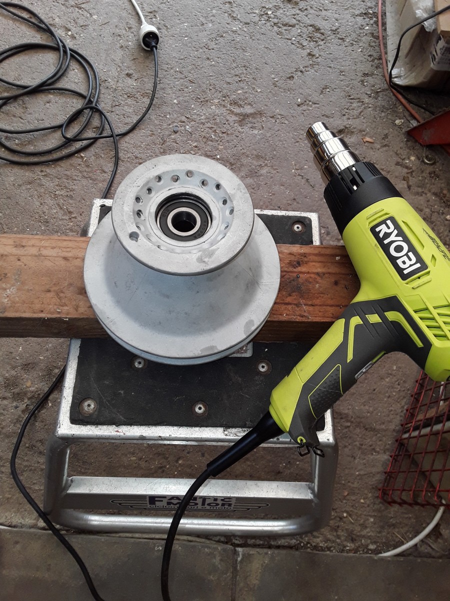 Montage des roulements avant mise en peinture. Petit déboire, la bague anti rapprochement trop longue bloquait la rotation des roulements... c'est bête ! On redémonte !