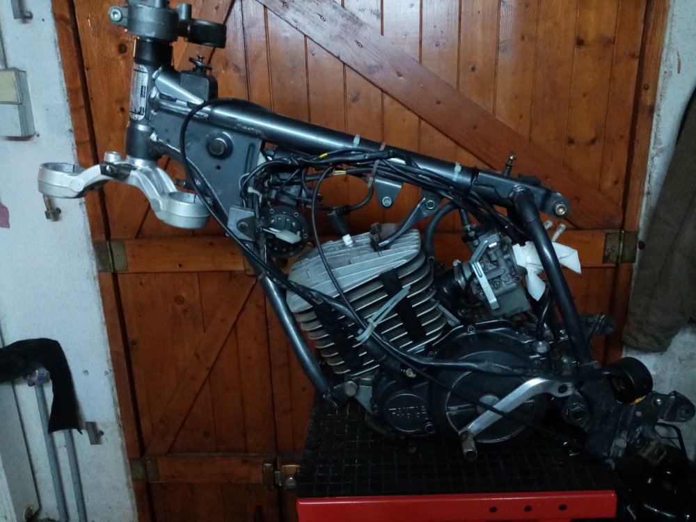 Le démontage de la partie cycle est fait, le moteur lui ne nécessite pas d'intervention, excepté une vidange de boite par principe.