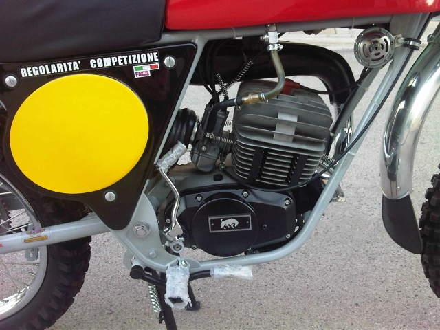 Le Fantic présenté a subi une bonne préparation, pot de détente du Tx158 "125 cross", avec silencieux adapté, je suppose que le moteur a été retouché ou doit être proche de celui du cross et que pour équilibrer tout ça, le carbu de 30 d’origine est passé à 32mm.