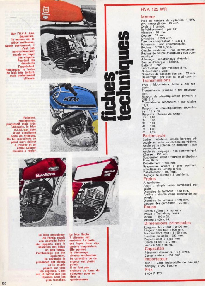 Moto(s) : FANTIC Pré-79, FANTIC trial 125 240, YZ 1976, HVA 1973,Rickman 1963