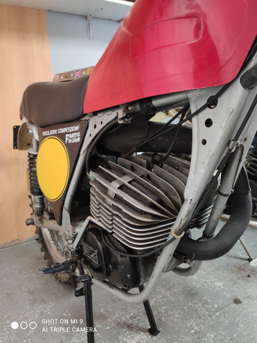 J'ai finalement craqué et j'ai acheté ce soir le Fantic Caballero... Du travail en vu.. mais une vraie excitation de voir cette moto dans mon garage. Va arrivé la phase de démontage pour la remise en peinture du cadre , tés de fourche, supports de phare,bras oscillant et fourreaux de fourche.