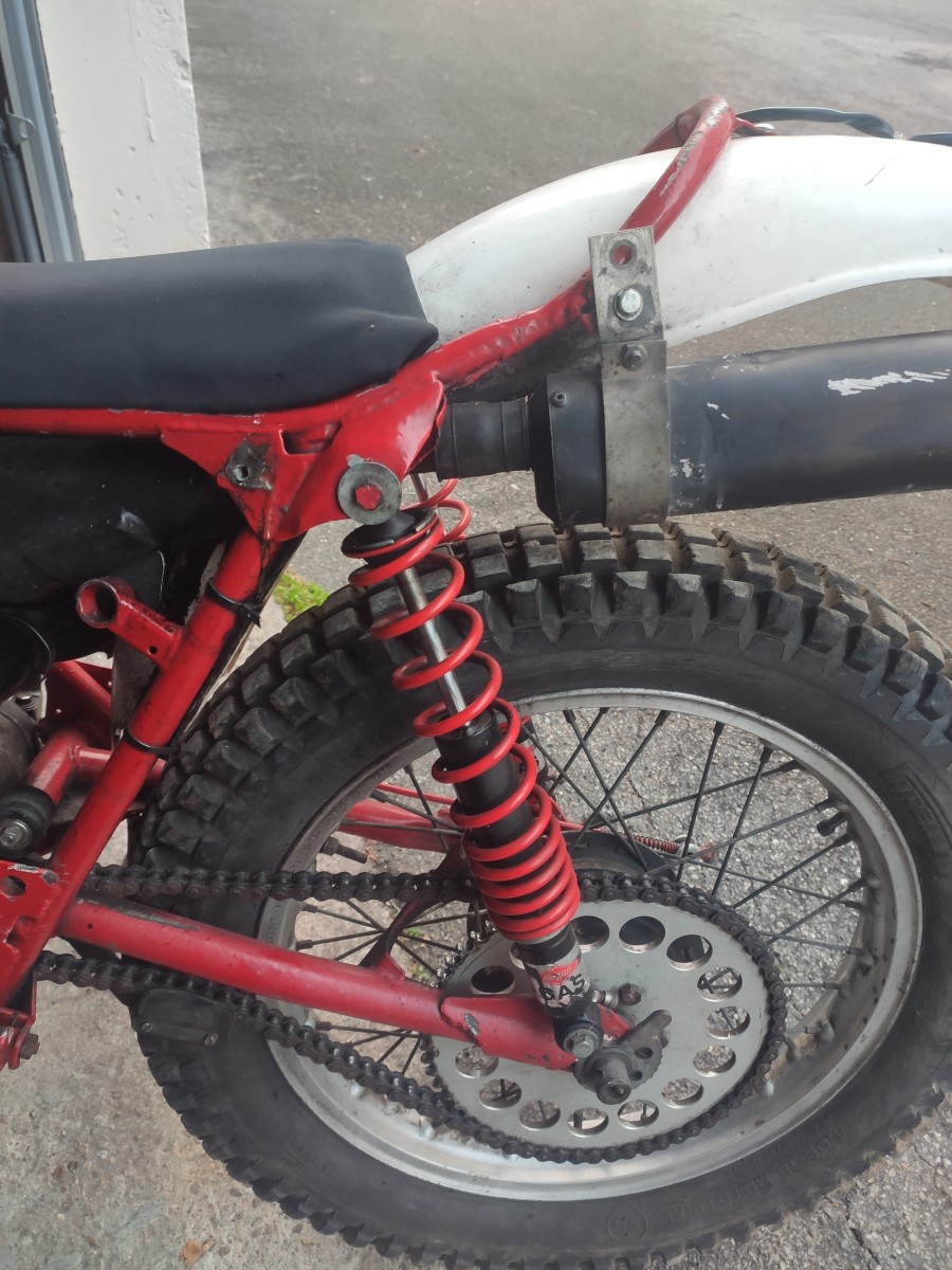 Les pneux sont rincés, le bras oscillant a du jeu, et un des 2 amortisseurs Betor est mort.