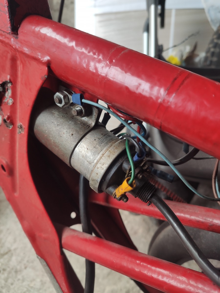 On continue le démontage : le faisceau électrique a été modifié, mais la bobine délivre tout de même une étincelle (malgré que la bougie actuelle ne soit pas du tout la bonne référence 😄