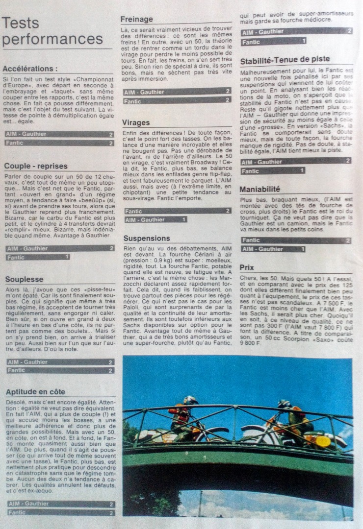 pour être sérieux : l'Aim à un chassis très grand cadre, pour un 50,  digne d'un 125, bizarre,  ce que Fantic à fait après le Mik est c'est un régal aussi bien que peut être trop rigide pour un pilote d'époque (les sections du chassis non rien à voir ( les 2 issu du 125 ); ça on ne saura jamais car le grand cadre 50 est arrivé trop tard