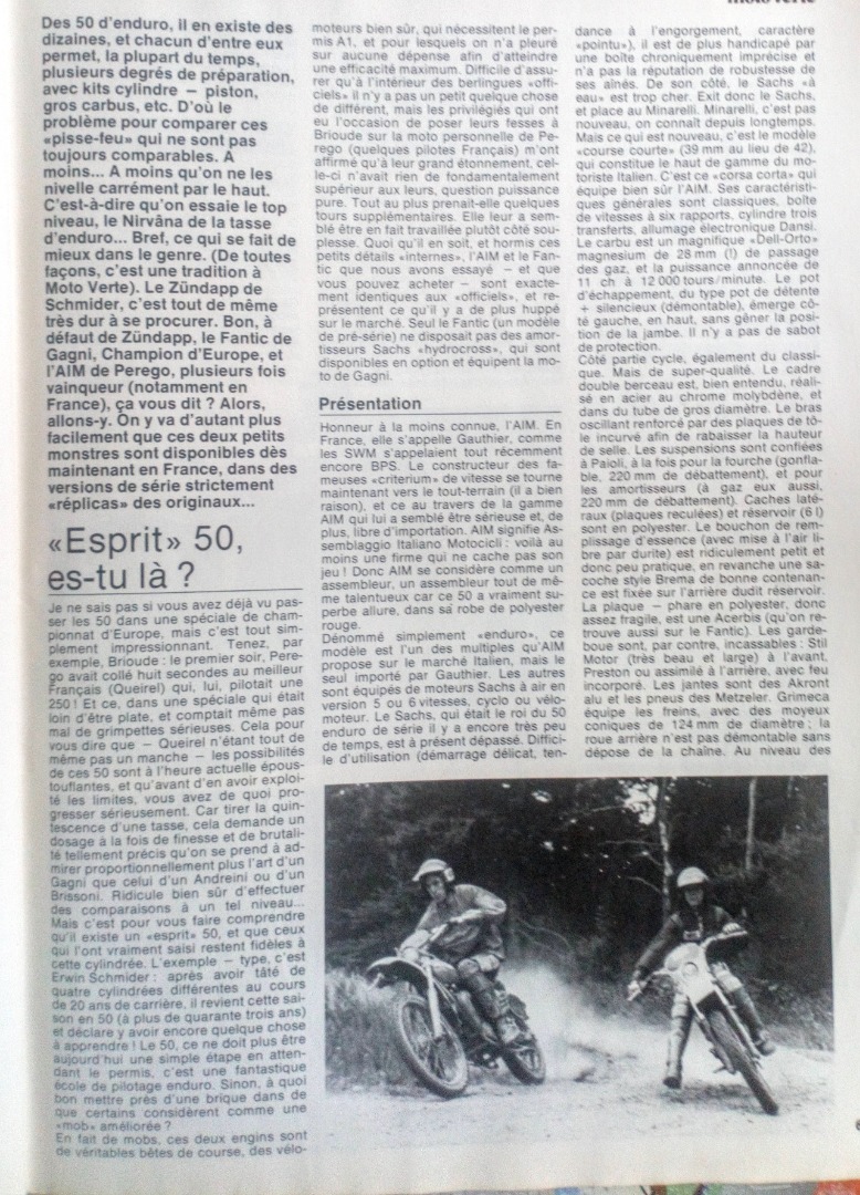 Aprés si tu regarde les modifs que j'ai apporté à mon Mik (principalement la grosse fourche et l'option Sachs Hydrocross )) par rapport à l'article je suis pas loin de LA MOTO IDEALE !