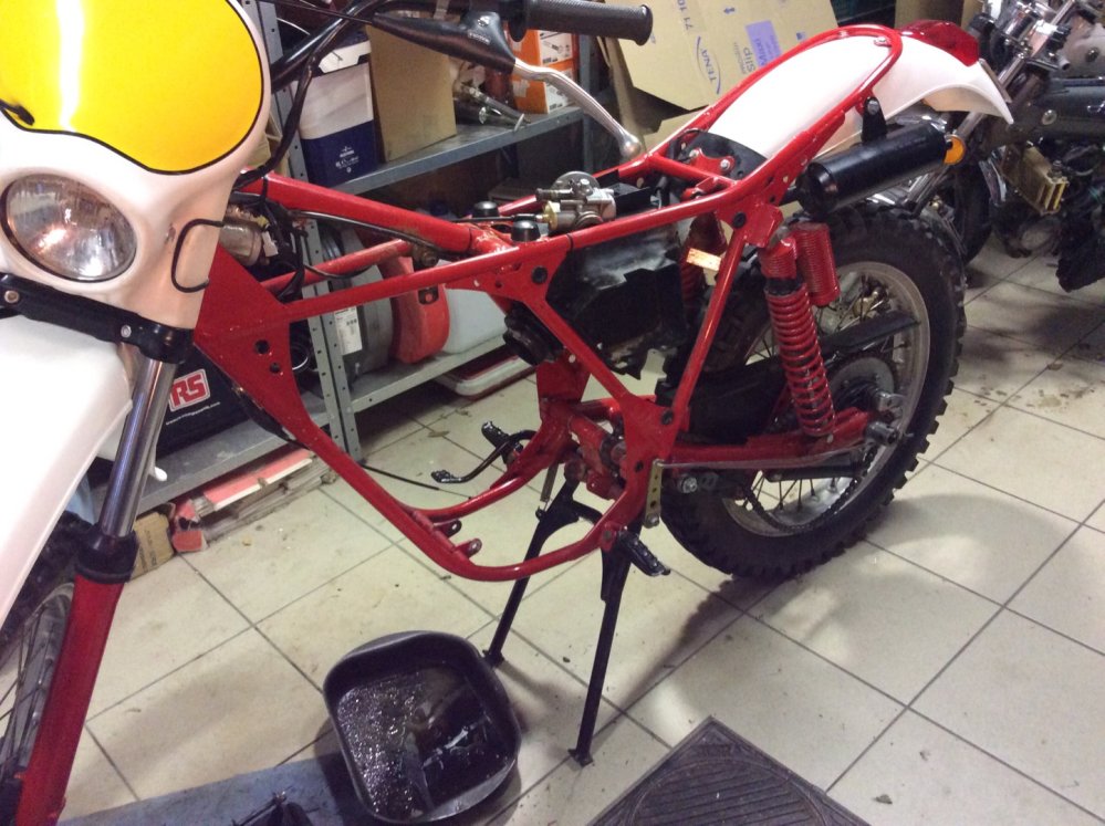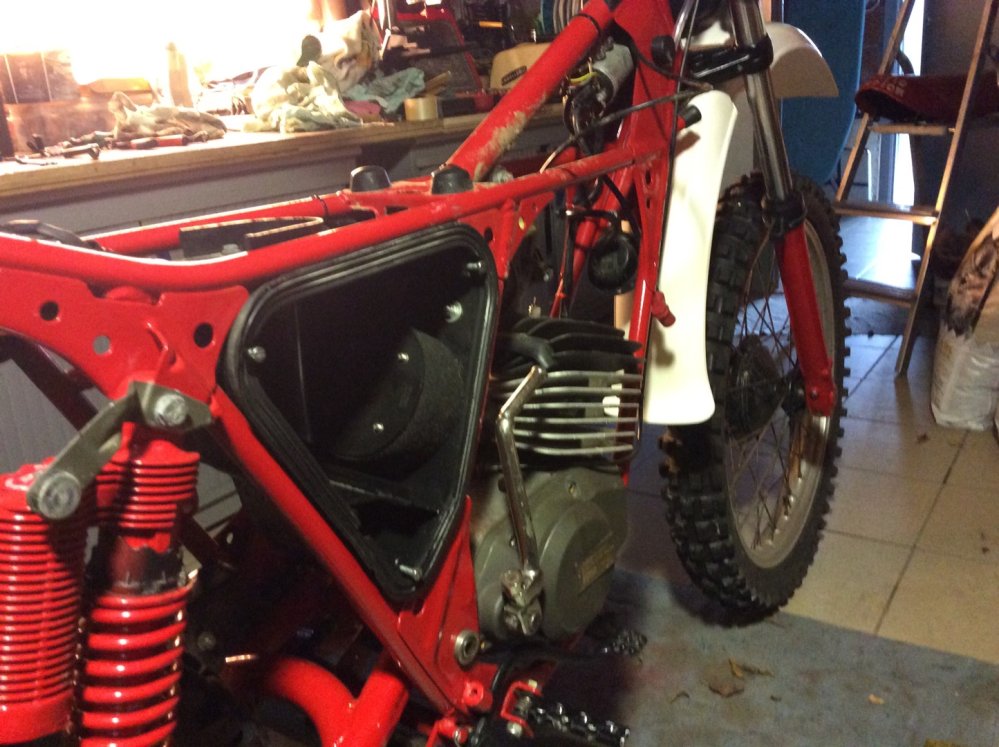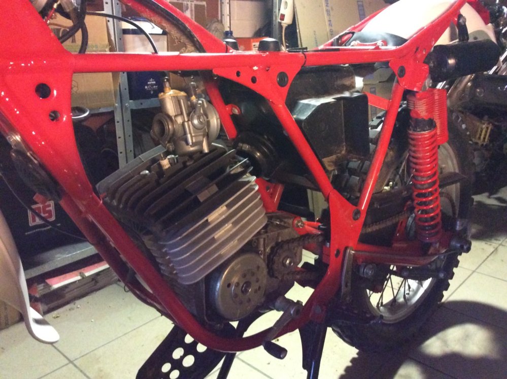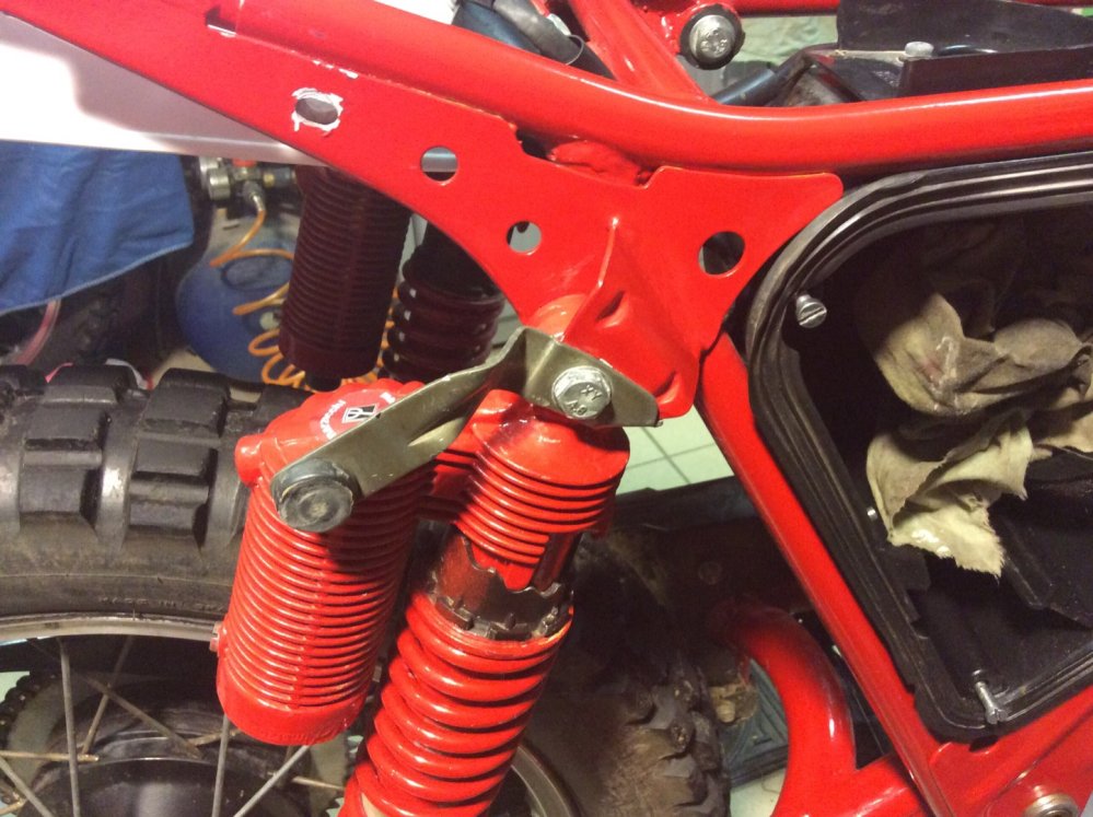 je vient de voir sur les photos de dieux 06 que sur sont fantic tx 190 il y avait des petites patte spécifique fixer sur le haut de l'amortisseur pour éviter que sa frotte sur les plaques l'atérale