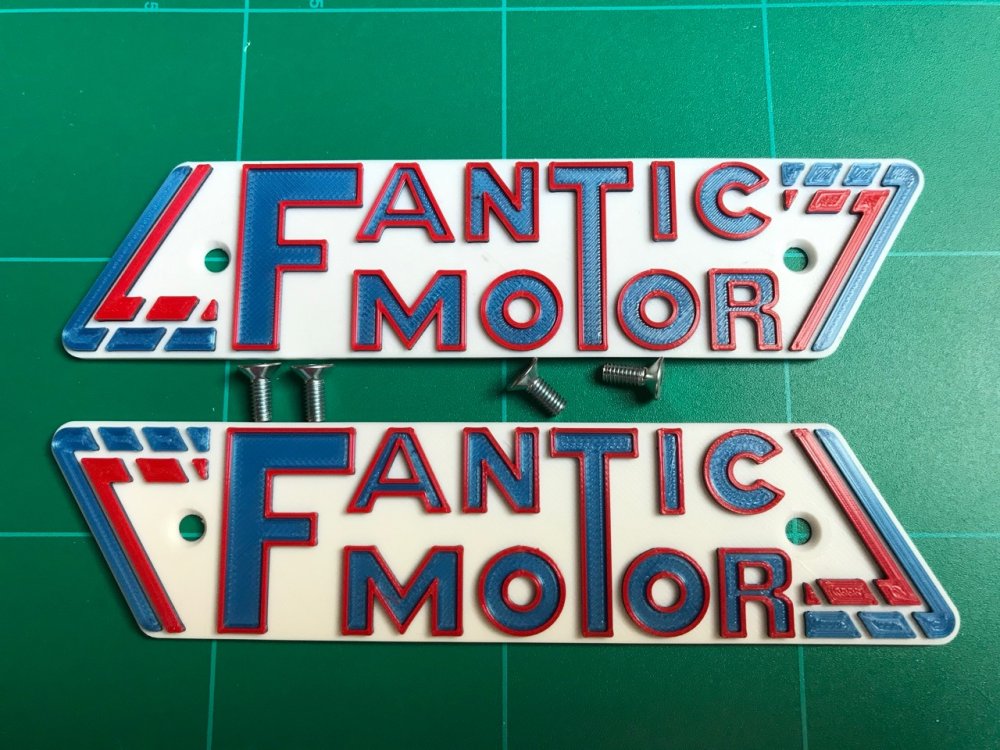 Si vous avez une imprimante 3D (2 ou 3 couleurs), voici les fichiers STL qui permettent de refaire les logos D & G du réservoir Blanc, Bleu, Rouge: