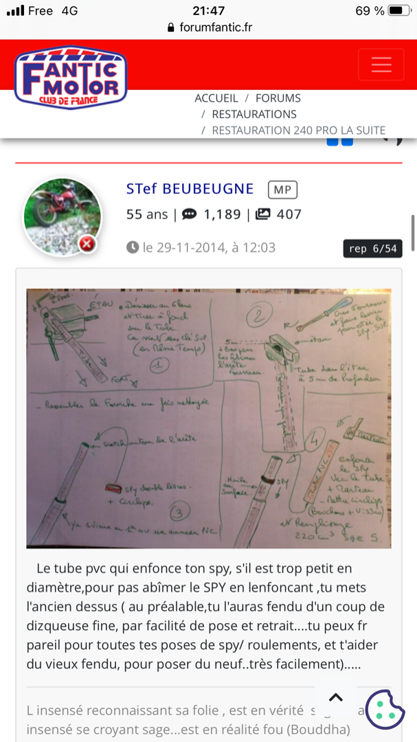 Et j’avais vu mon père, pour le remontage des joints spi, il le mets avant de mettre le tube lui avec une douille et mets le tube après ? Pourquoi vous ne faites pas comment ça ? Car sinon il faut un tube pvc pour l’enfoncer plus compliqué je trouve ?