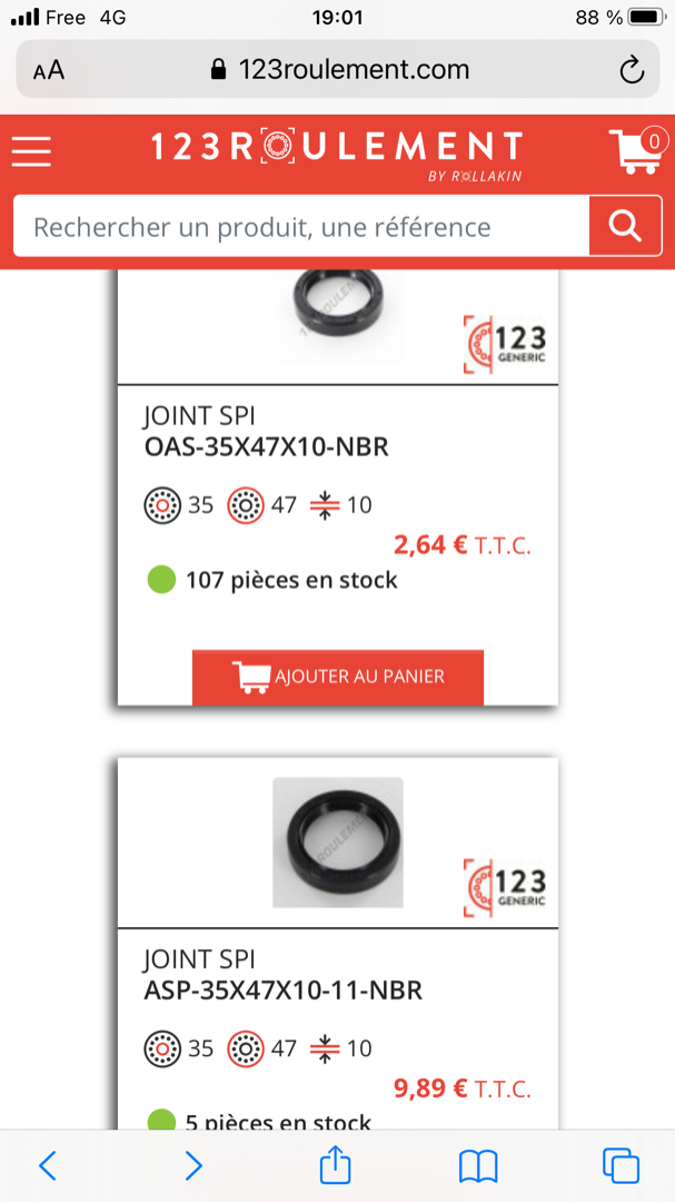 Je vois sur le joint, c’est un 35/47/10, vous me confirmez cela ? Faut-il mieux les achetés chez par exemple BMZ équipements ou un mec classique qui fait des roulements comme 123 roulements ? 14€ d’un côté et l’autre 3-4€ cela me parait énorme la différence quand même, est-ce la même qualité ?  Je voudrais savoir si le joint inférieur est le même que le supérieur aussi ?