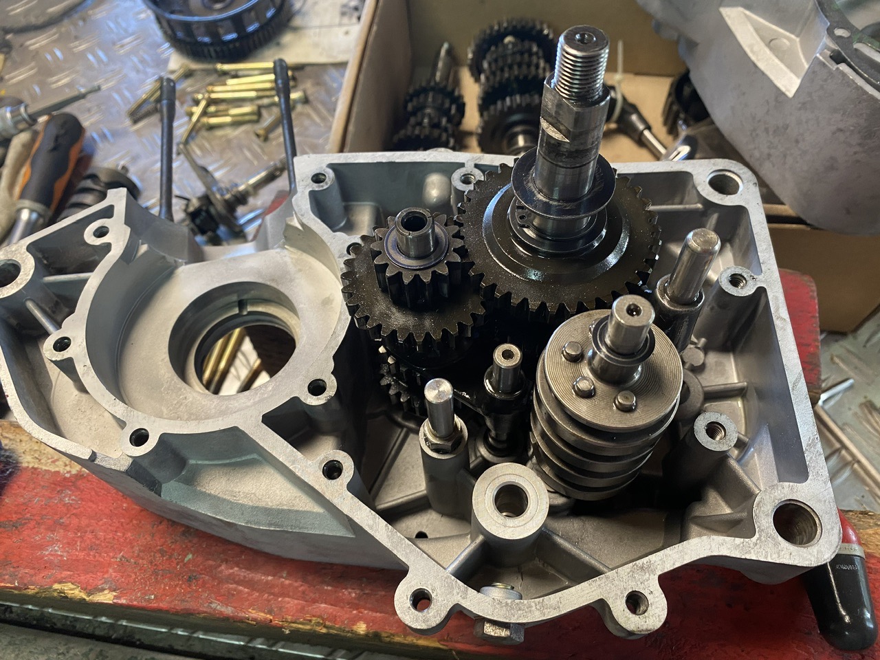 J’ai redemonté pour recaler l’arbre secondaire qui avait un peu trop de jeu en récupérant une rondelle sur ma boîte cassée !