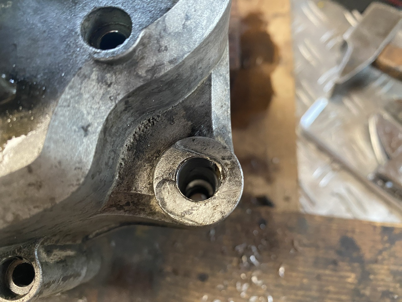 Les carters étaient assez propres, du coup j’ai fait quand même un microbillage rapide, en ayant pris soin de boucher tous les taraudages avec une vis , ce qui évite que çà colle aux résidus gras 😁