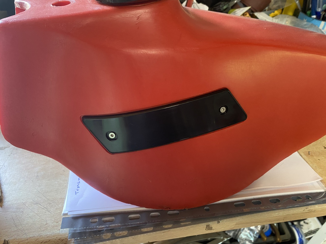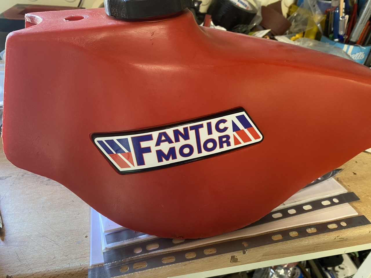 Et pour le réservoir, les plaques maison aux couleurs italiennes :