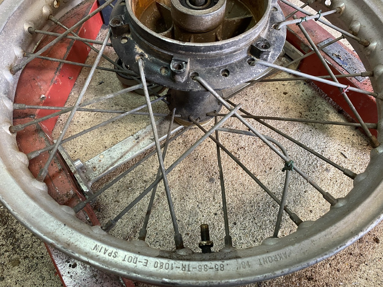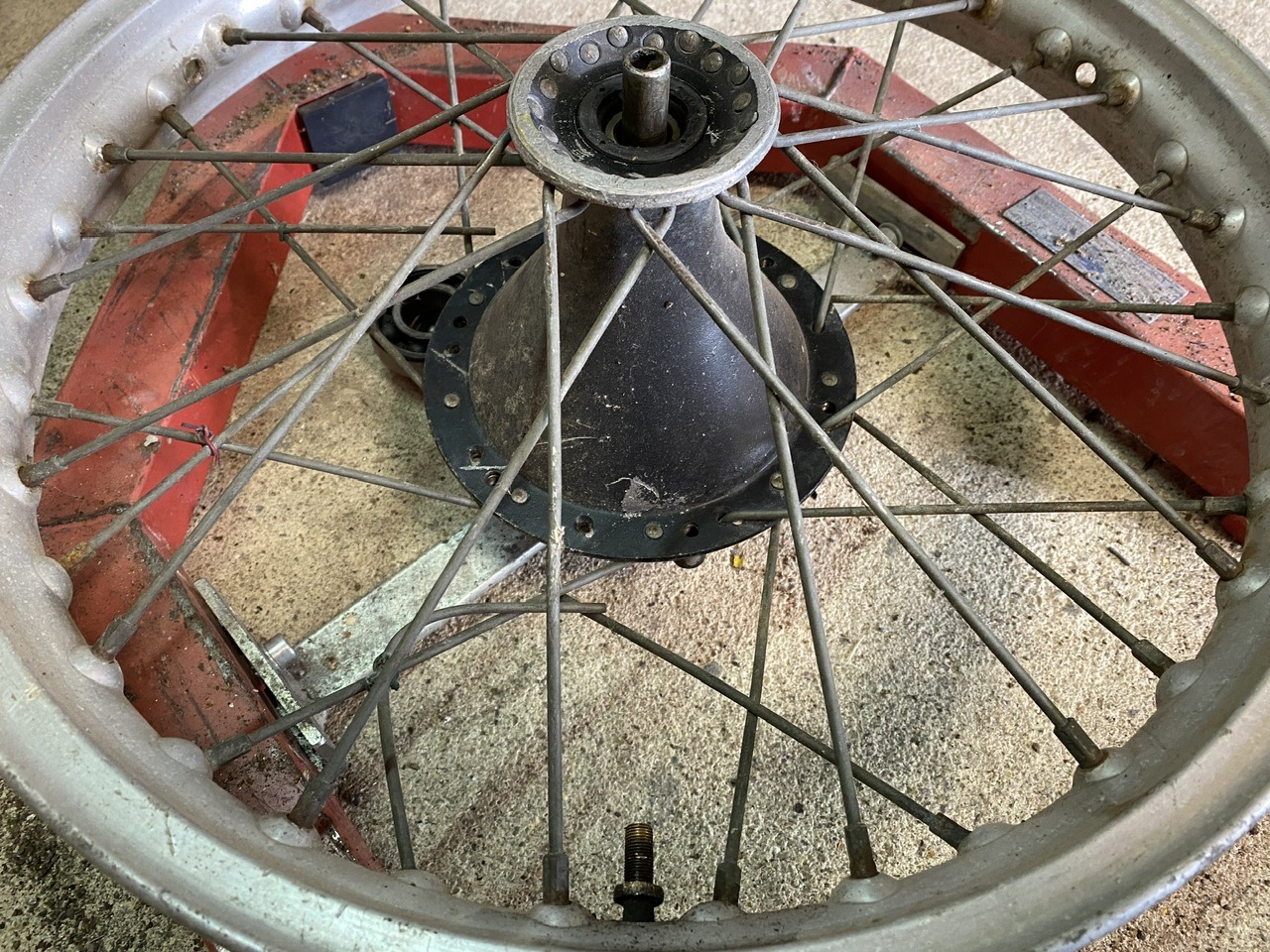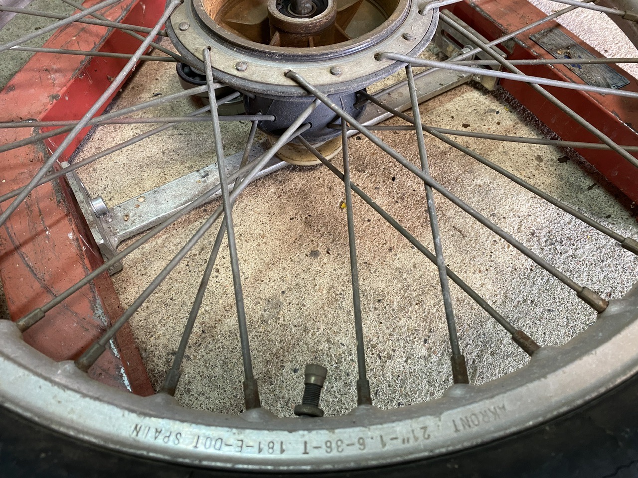 Les jantes ne sont pas jolies, mais pas voilées ! Je vais les garder, et je remonterais avec des rayons neufs après peinture des moyeux !