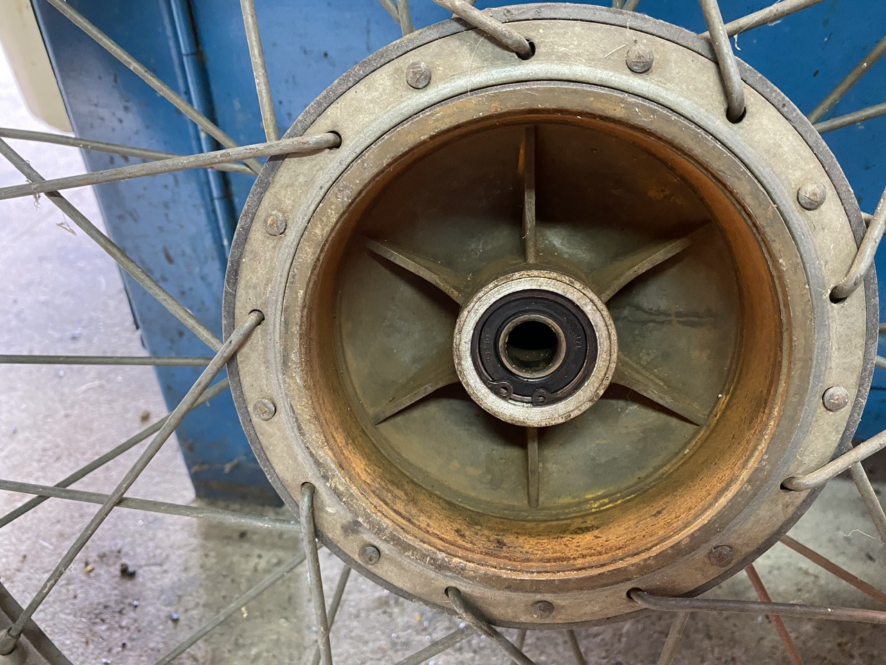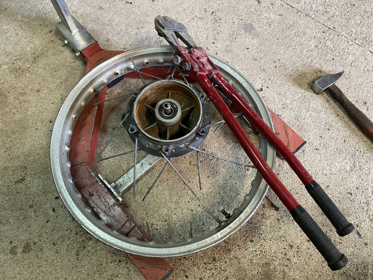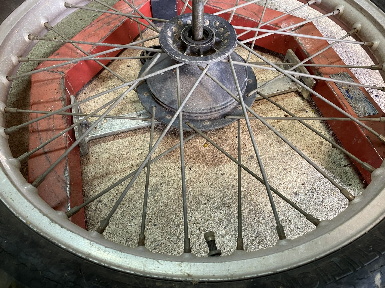 Les jantes ne sont pas jolies, mais pas voilées ! Je vais les garder, et je remonterais avec des rayons neufs après peinture des moyeux !