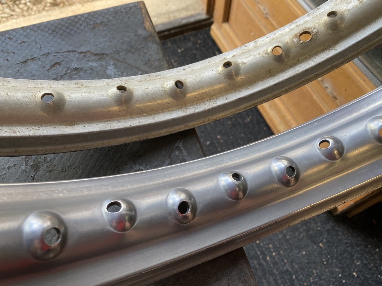 Et j’ai déjà sauvé la jante arrière : miror , paille de fer triple zéro et huile de coude 😁