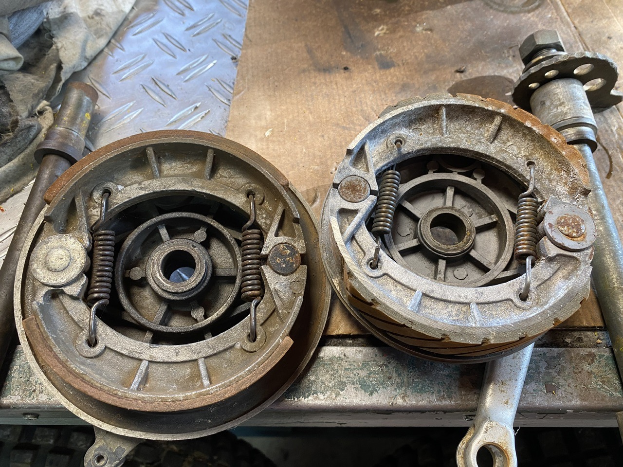 Pour la suite des roues, les moyeux et flasque de tambours sont passés au microbillage, mais je n’ai pas de photo !
