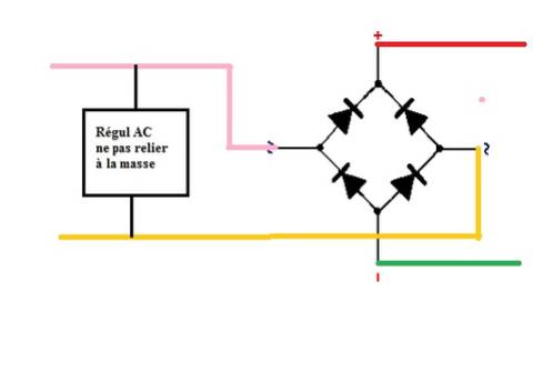 Branche les cosses d'entrées et de sortie..sur ton redresseur..de remplacement...comme tu as trouvé sur l'ancien...
