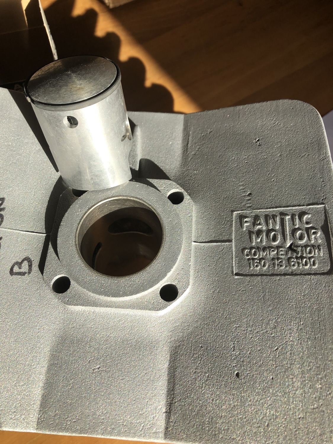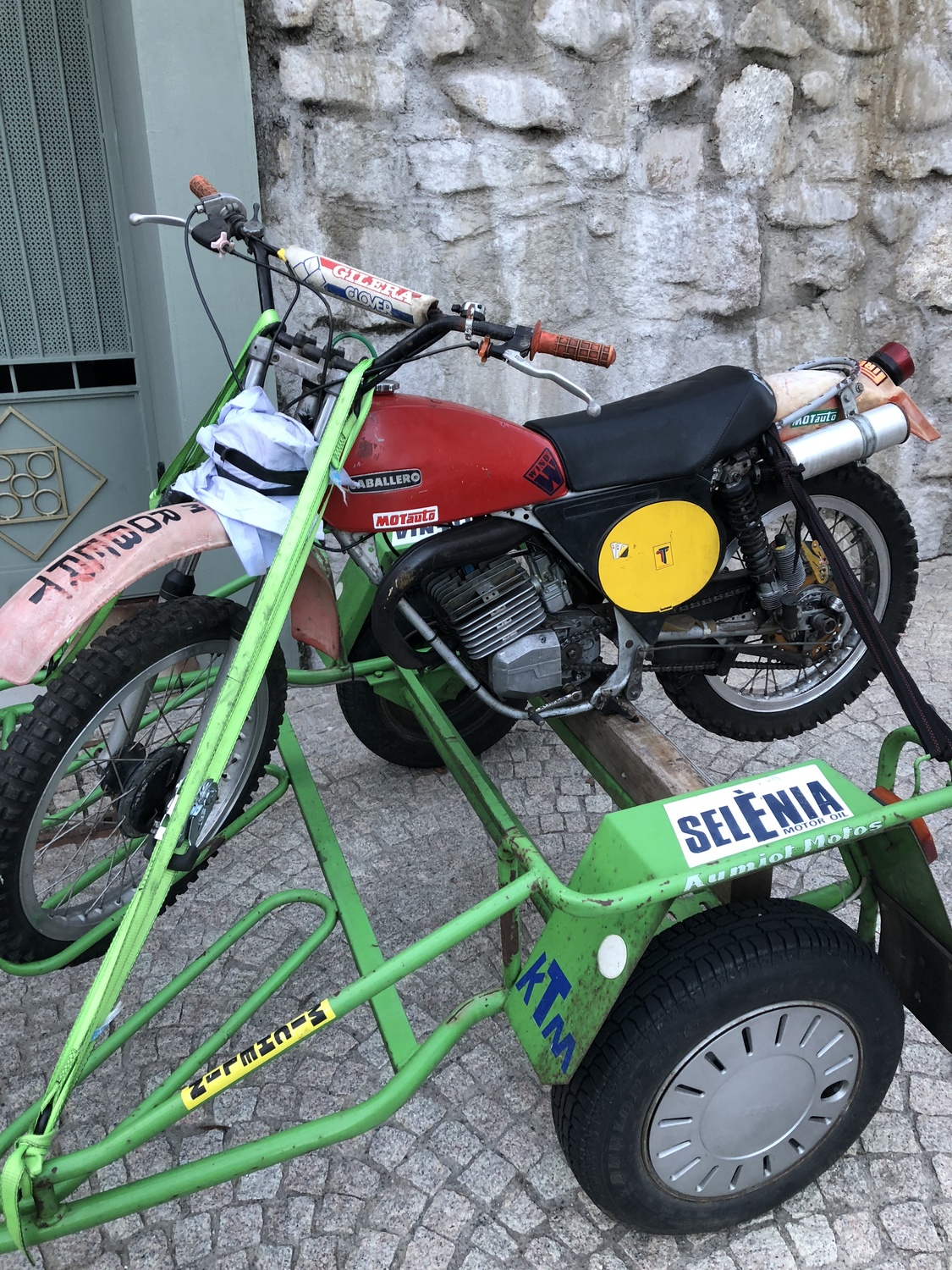 "Quelques entorses au règlement " : la borsetta en cuir et non en skai , pas de manette starter a cable(starter au carbu ) , tige de frein(avec chappe de karting). les trous dans les aillettes du cylindre et de la culasse ne sont pas de mon fait (je l'ai acheté comme cela ) ....