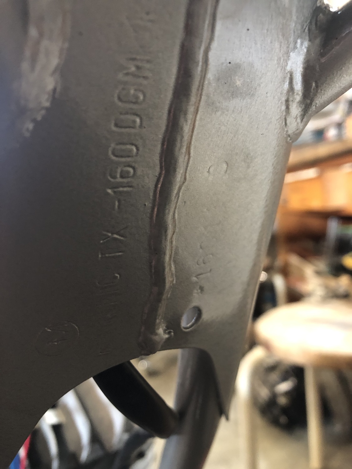 1 le cadre : frappé tx 160 comme il se doit et"sans" la patte soudée juste derrière la colonne de direction(reservoir tole ) qui a été rajoutée pour les modèles suivant avec les reservoirs plastique (cette patte sert a visser le reservoir plastique entre la colonne et le bouchon )
