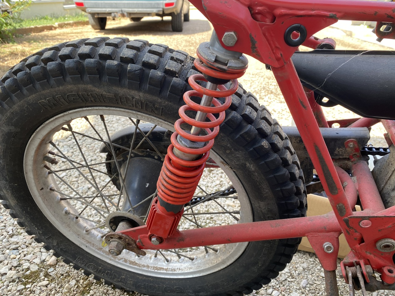 # Amortos exclusivement prévu pour le 300 (implantés plus en avant sur cadre et bras oscillant) avec ressort dur et frein hydraulique très important => Autant souder 2 tirants pour rouler en "rigide"